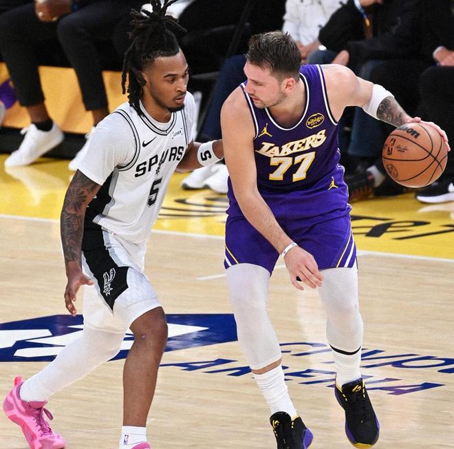 四旬詹皇隔扣怒砍准三双,东契奇35+5+8难救主,残阵马刺复仇湖人
